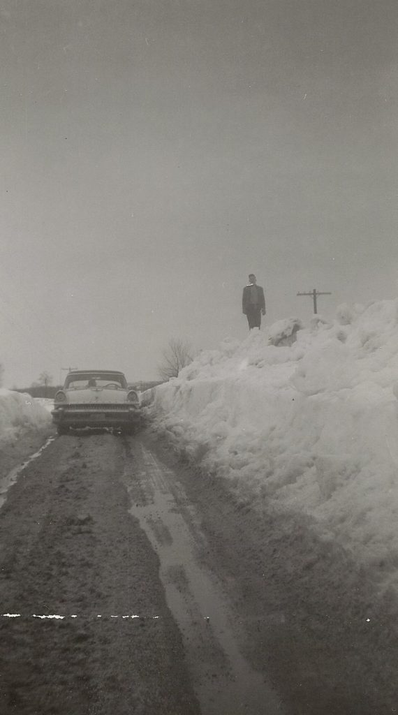At right, for those doubters out there, is proof from this 1962 image. There’s barely enough room for one vehicle to pass through the snow banks along the road.