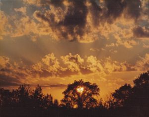 My writing career has been blessed by a stint as photojournalist for my home town newspaper. One of my revered images is the sunset taken at the Black River Jam outdoor concert (shown below) that was popular with those who attended. It was an awesome event put on by my neighbor and friend, Dennis Ogurek. Denny was a year older and an adversary until we had a dust up in the halls of our high school after which we became good friends. I featured Denny in a work-related photograph that garnered honorable mention in a Manpower photo contest.