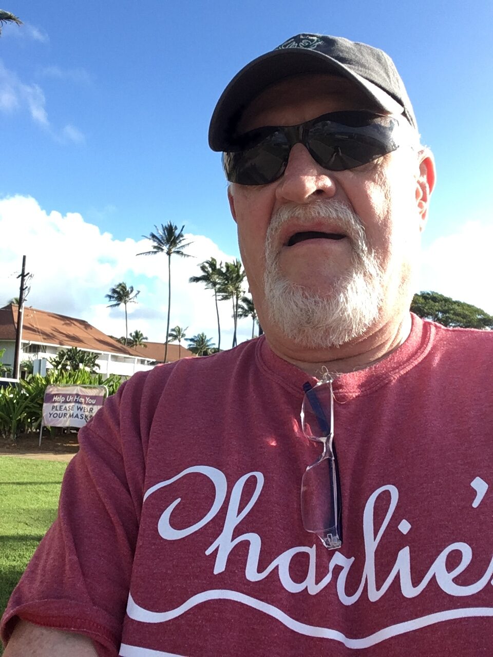 Sporting my Charlie’s t-shirt, my brother and I strolled the Poipu beach area of Kauai in February 2022.